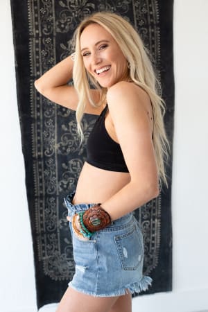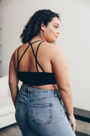 Made to be seen, this bralette has open weave like floral cut-outs that start high at the neck and dip along the decolletage. Intricate, airy-stitch traces the stretchy fabric of this bralette’s sweetheart neckline and offers a low, strappy back to layer with so many styles.