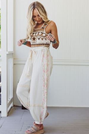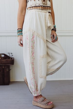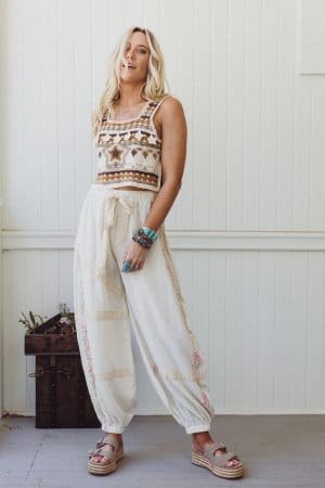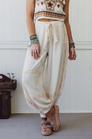Pair these lacey boho joggers with a graphic tee for a laid-back look.