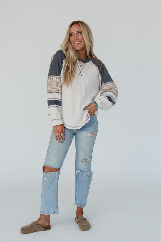 So cute and cozy, the Floral Drizzle Patch Sleeve Top is the perfect choice for you, featuring a boho silhouette that can't be beat!