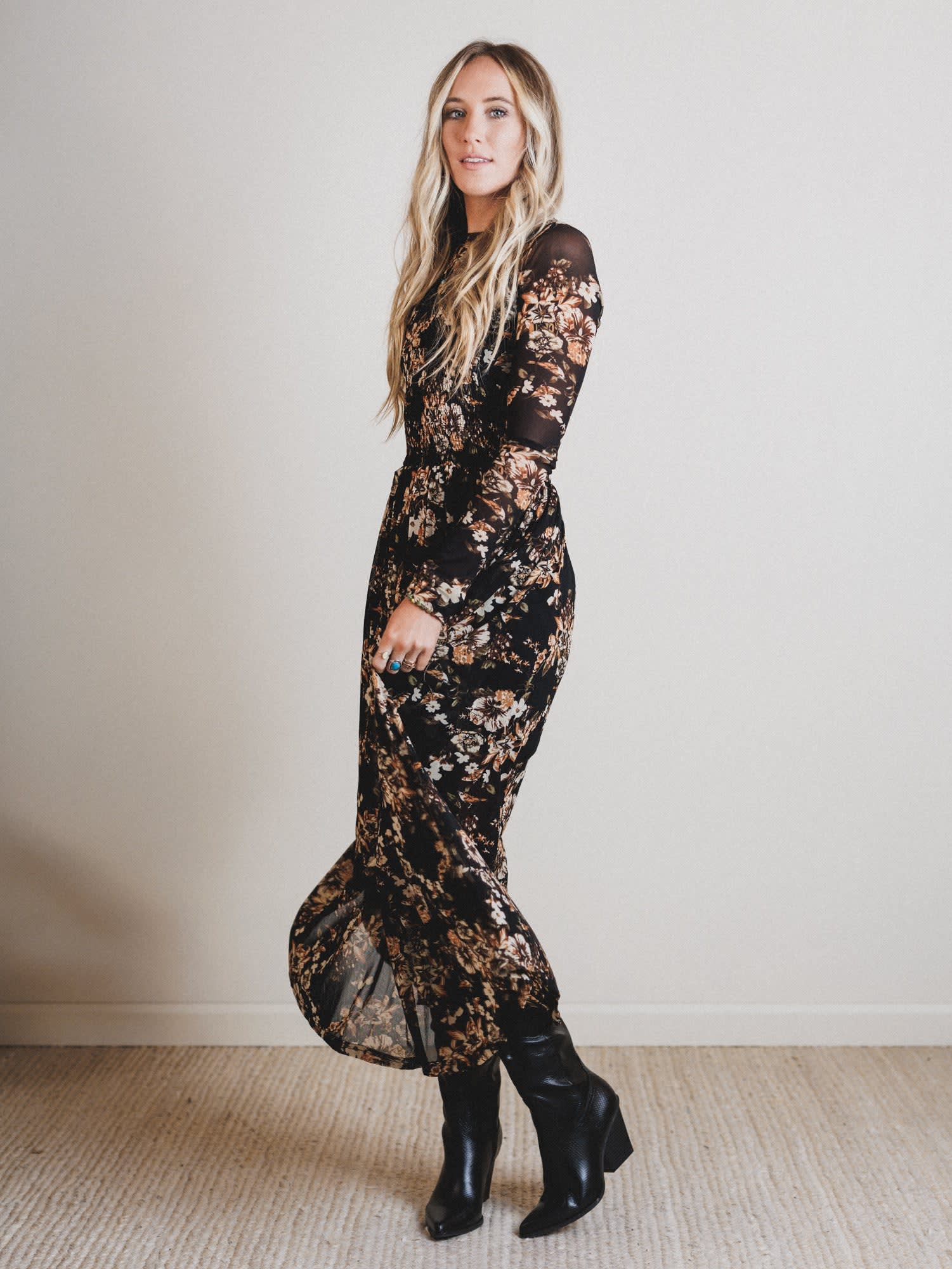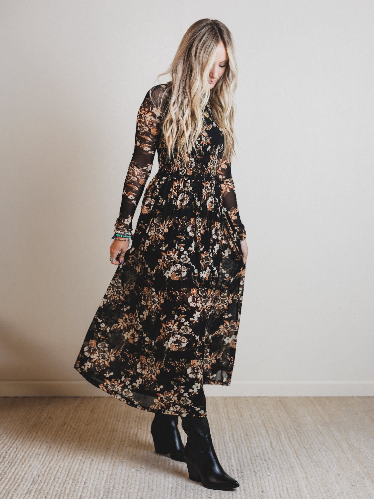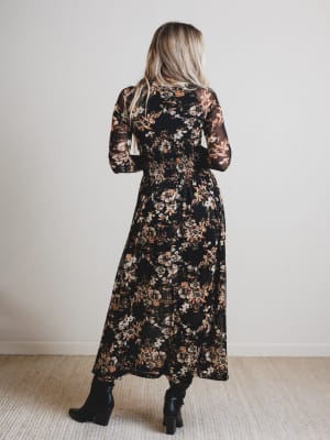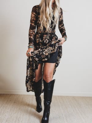 Meet your new dreamy go-to for fall festivals, date nights, and everything in between. This sheer floral maxi brings all the moody boho vibes with zero effort.