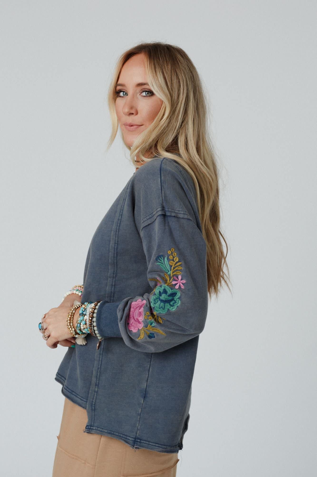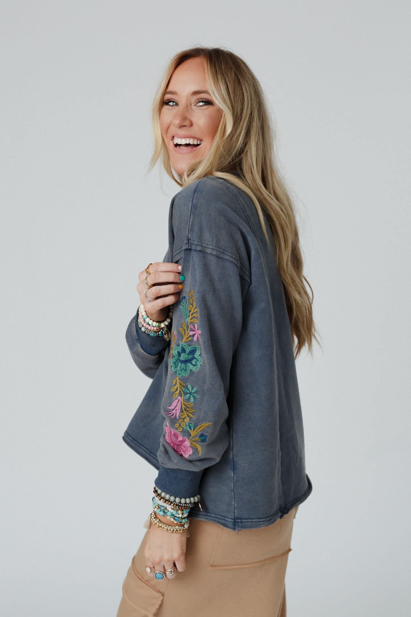 - Cute floral embroidery along the sleeves