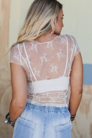 Pair this mesh top with a bralette and overalls for a simple yet cute casual look.