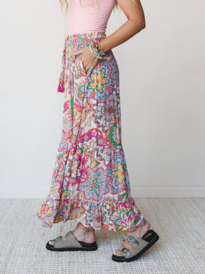 Floral Swirl Ruffled Pants Color