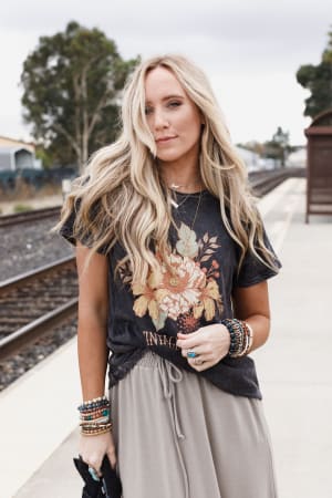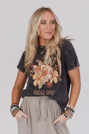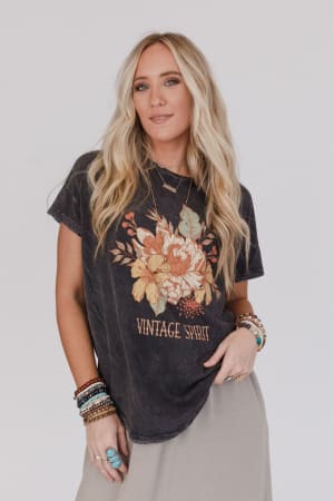 Effortless and laid back with a stunning graphic is the Floral Vintage Spirit Graphic Tee!