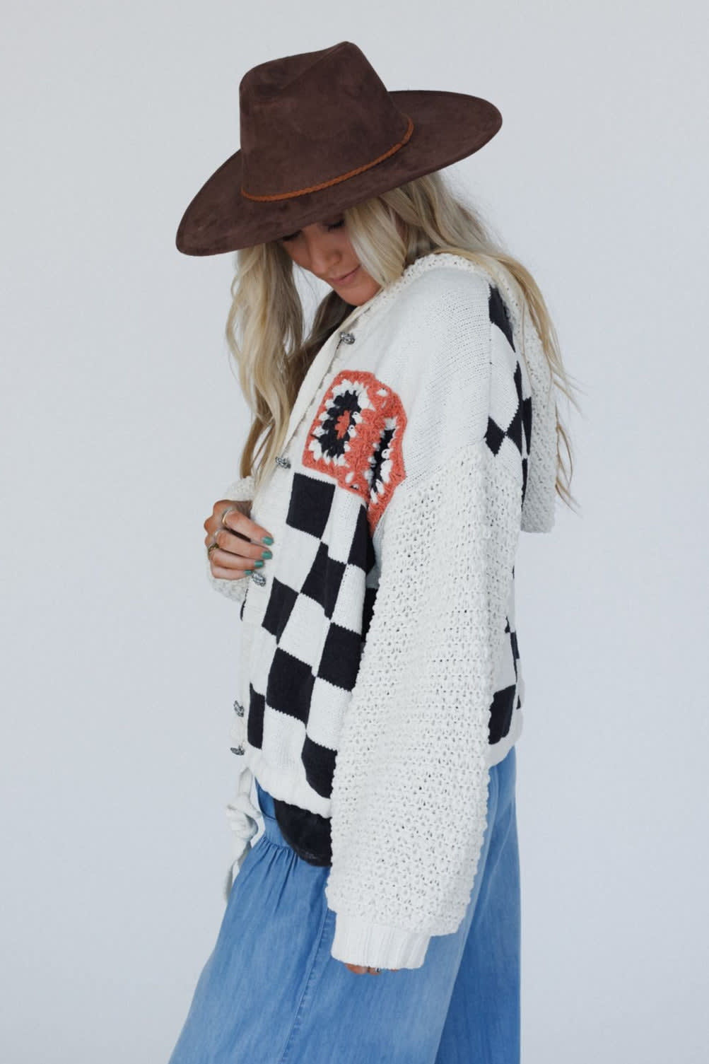 So unique with its fun design, the Flower Check Hoodie Top is an eye-catching addition to your wardrobe, perfect for layering from this season to the next!