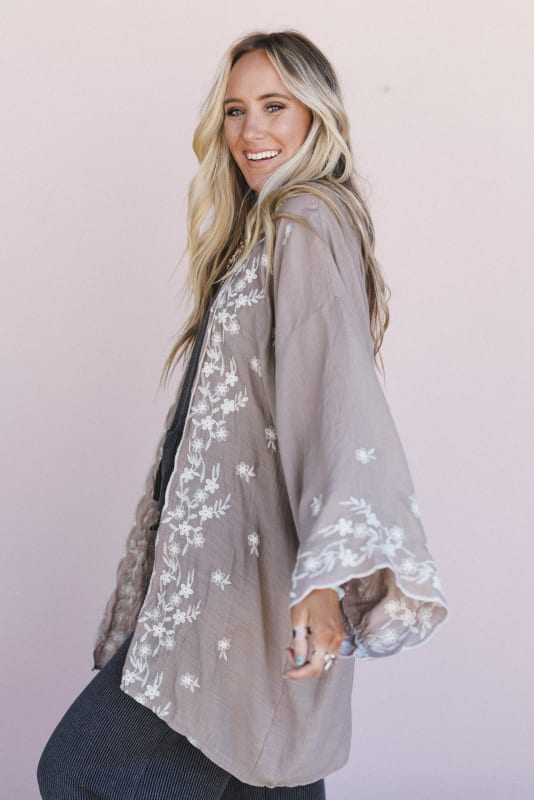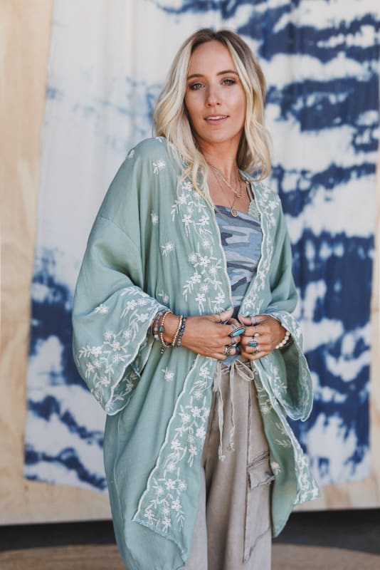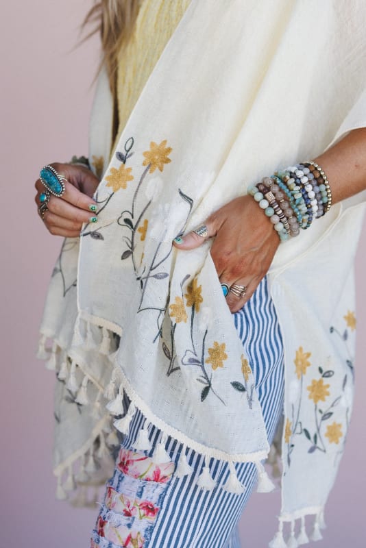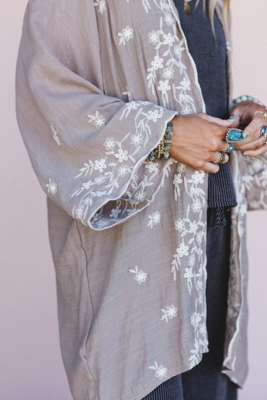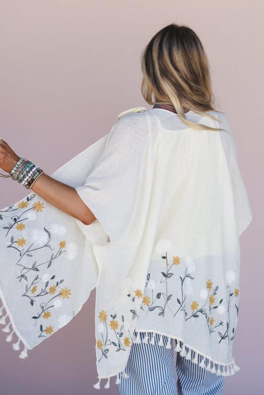 This flowy embroidered kimono doubles as a swim cover and looks amazing with a simple tee and jeans.