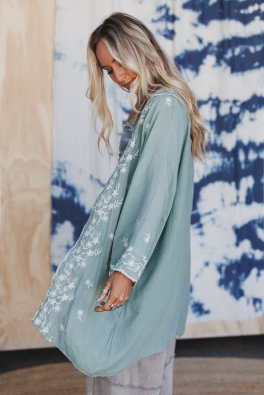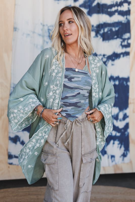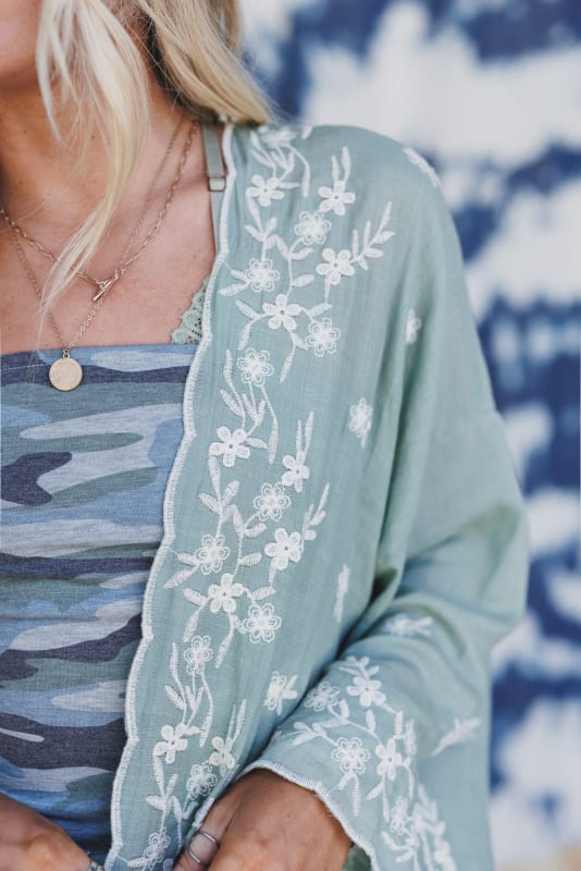 This flowy embroidered kimono doubles as a swim cover and looks amazing with a simple tee and jeans.