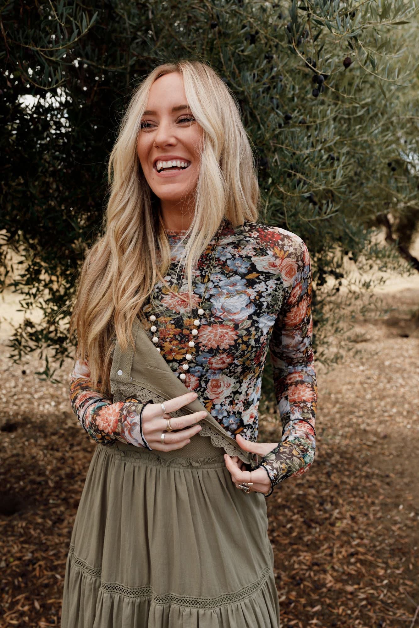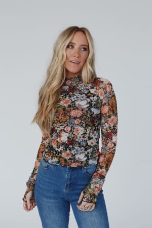 Bring on the boho floral drama in this mesmerizing floral print, the Flower Garden Mesh Long Sleeve Top is a new essential!