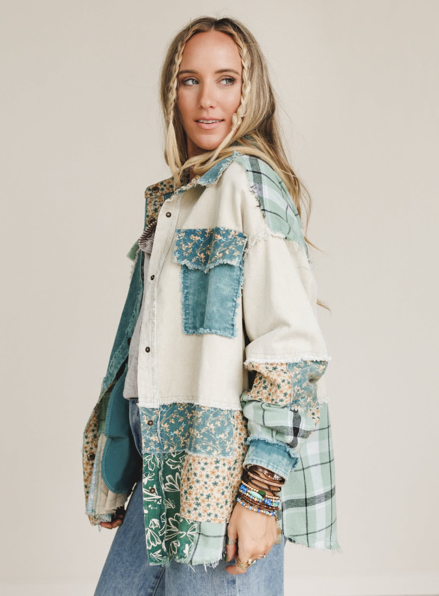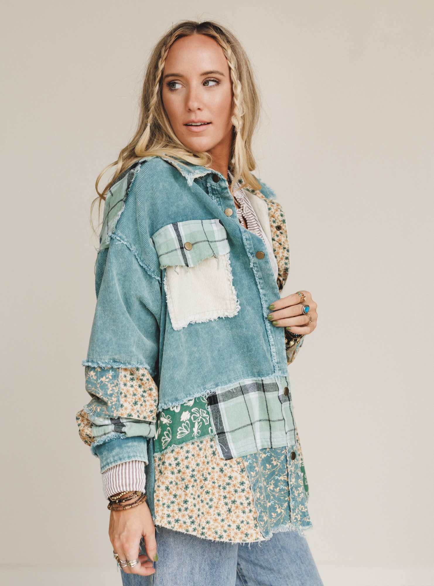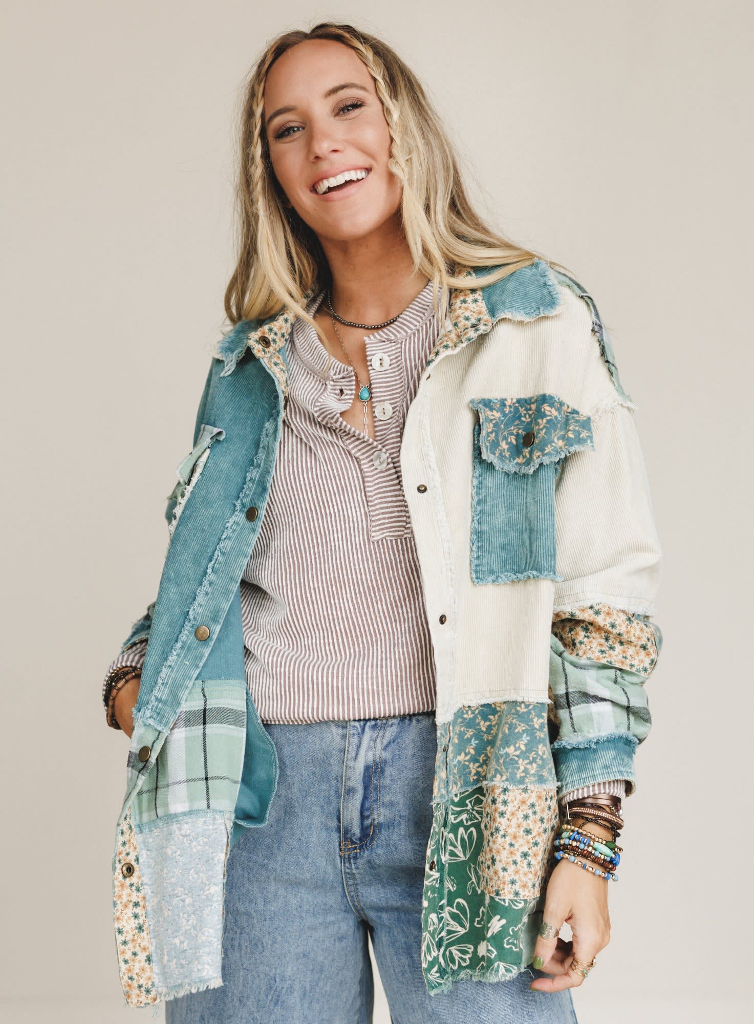 Meet your new forever favorite layering piece. The Flower Mountains Button Down Top is a patchwork daydream, made for all your mountain mornings and meadow strolls. It’s the kind of jacket-shirt hybrid that brings cozy charm with a vintage twist—equal parts rugged, romantic, and effortlessly cool.