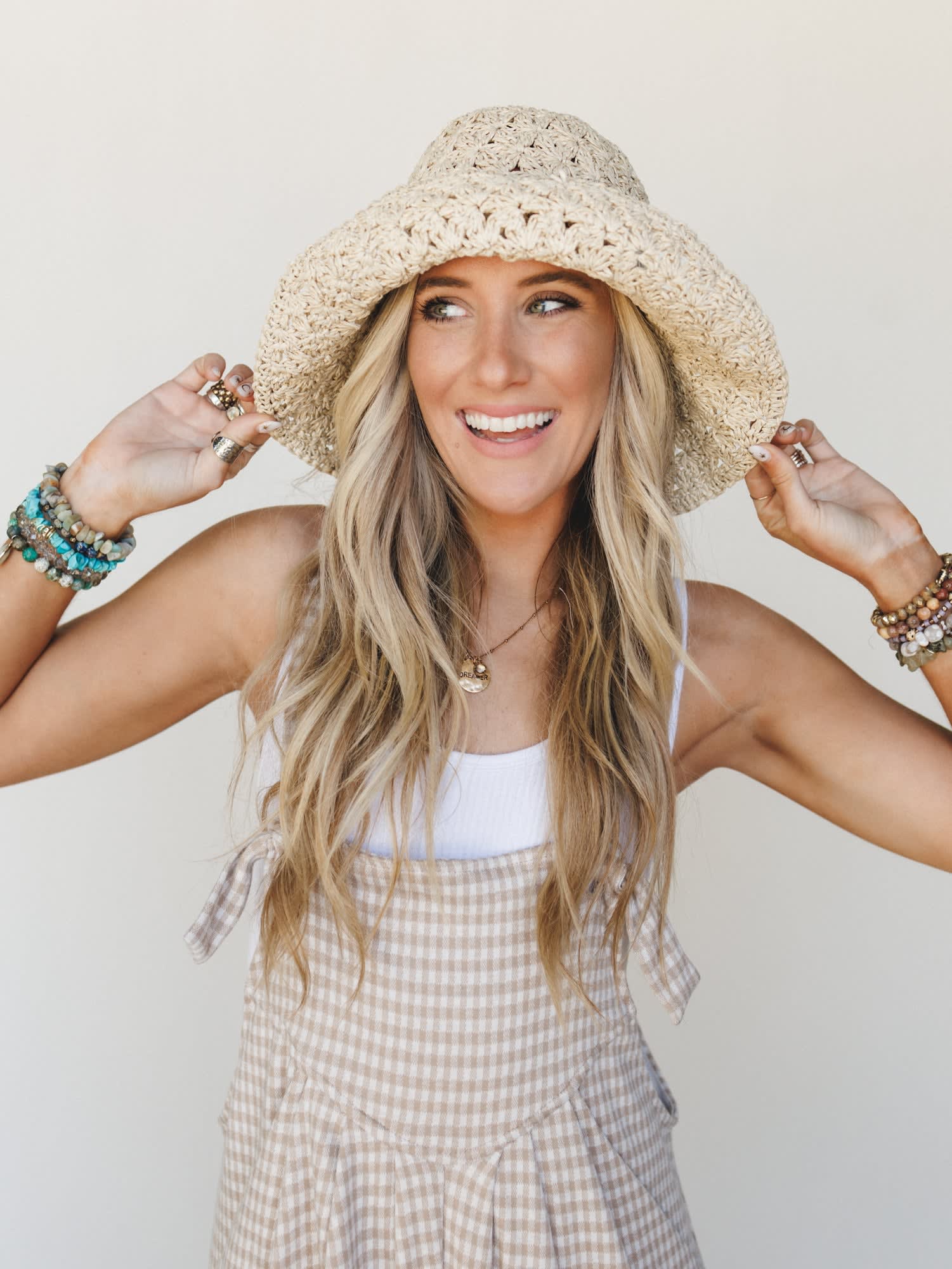 What to wear to a summer festival, a beach day, or honestly just a really good afternoon outside — start with this hat. The Flower Party Hat is the kind of boho accessory that makes every outfit feel intentional, with an open crochet flower stitch that's as pretty up close as it is from across the field.