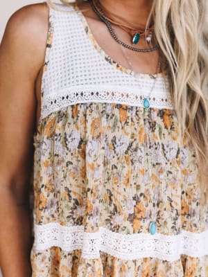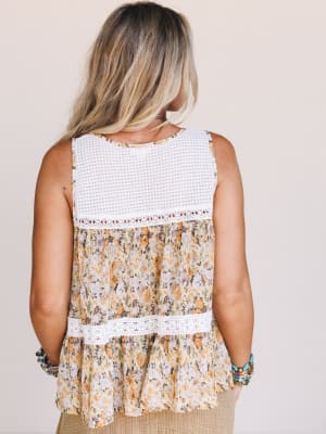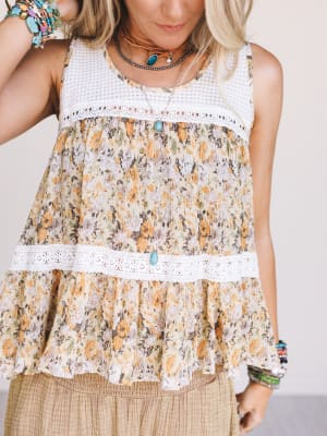 Light, airy, and full of charm — the Flower Picking Tank is the perfect top for sunny days and easy layering. It’s everything you want in a boho blouse: soft floral print, feminine lace, and breezy movement that flows with you.