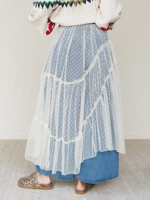 - The First Light Lace Skirt adds dreamy dimension with its dotted mesh overlay, tiered silhouette, and soft movement