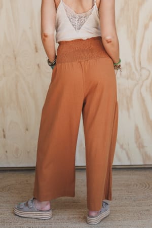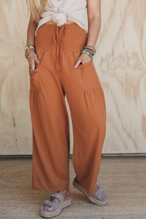 - Wide leg smocked waist pants