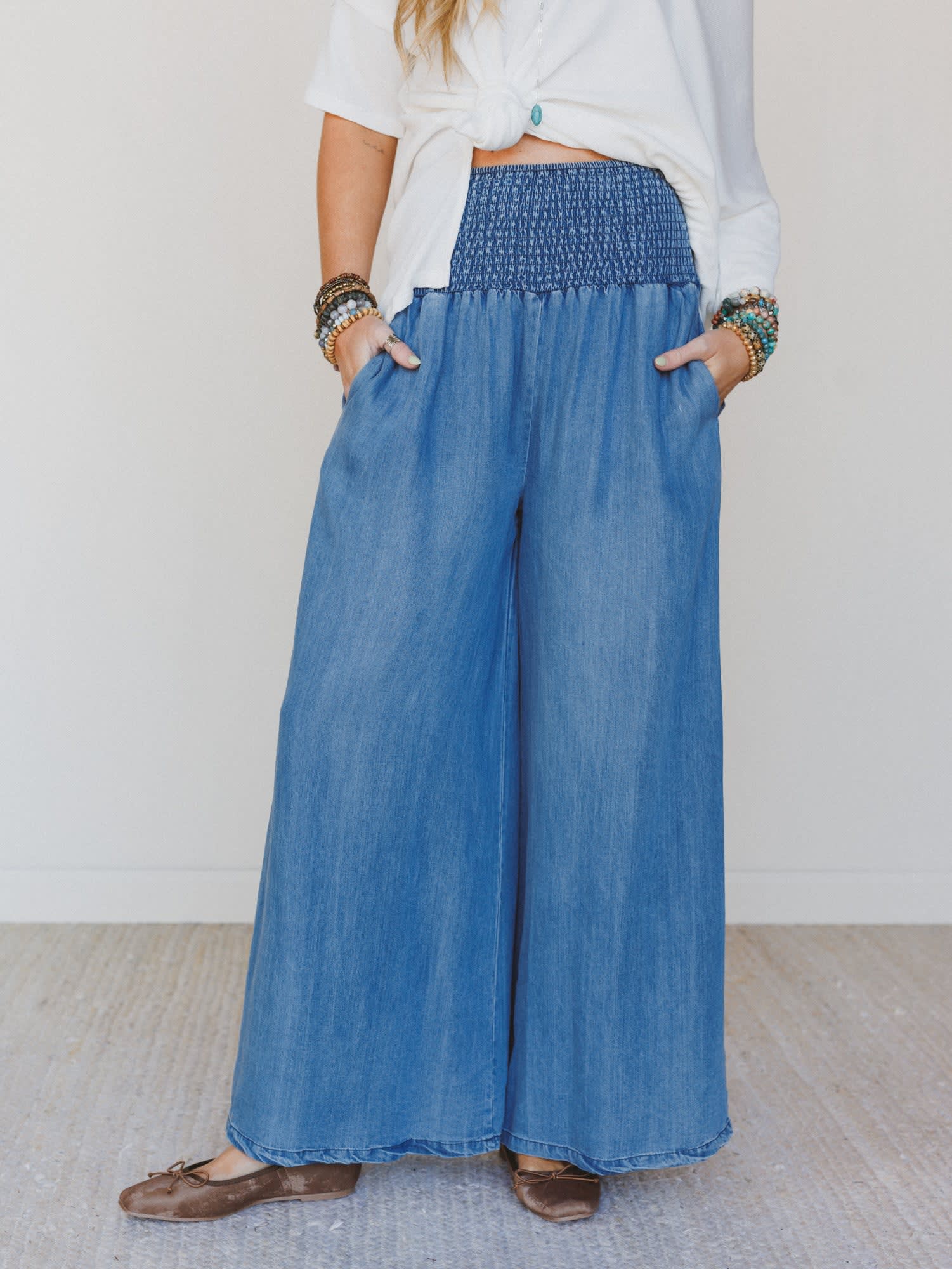 Never feel uncomfortable in a pair of jeans again with the Free Falling Wide Leg Pants!