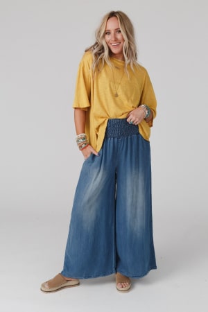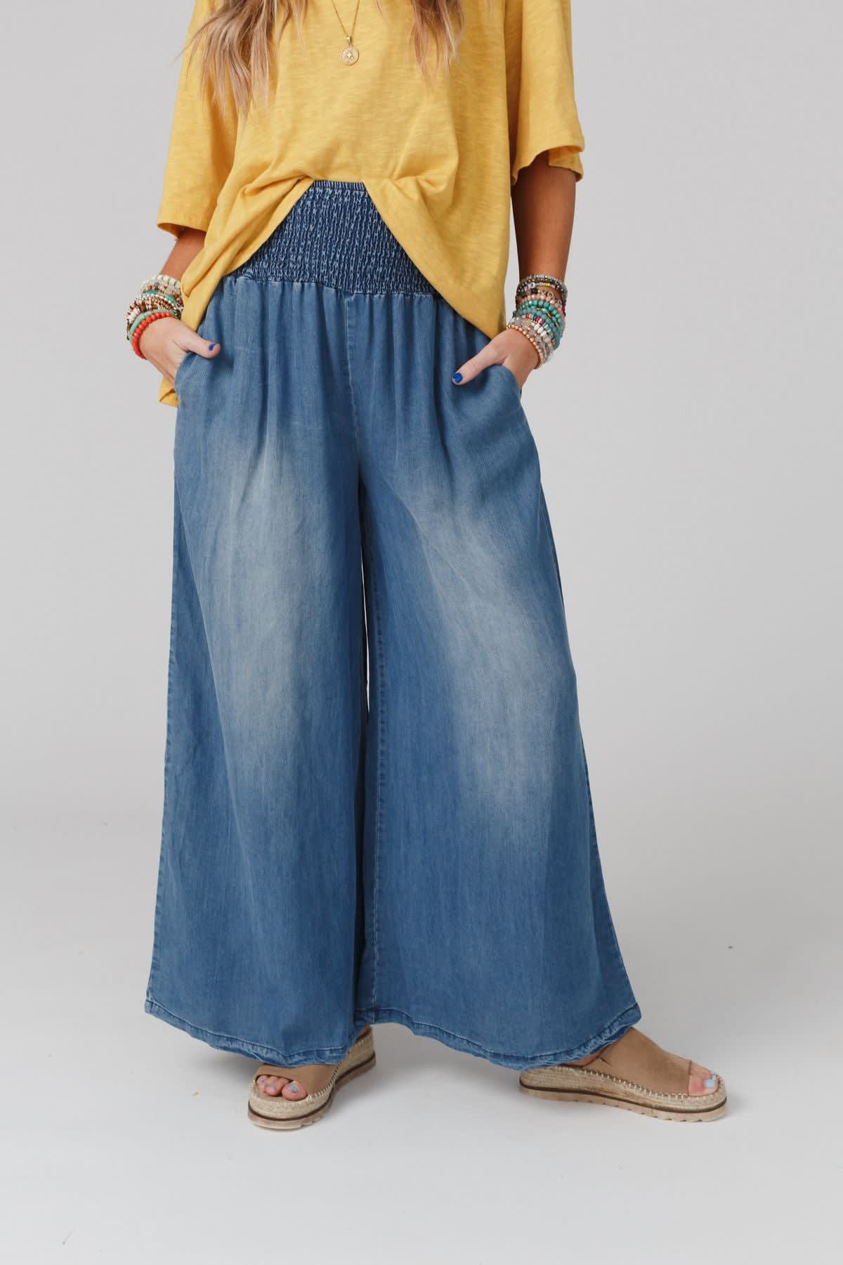 Never feel uncomfortable in a pair of jeans again with the Free Falling Wide Leg Pants!