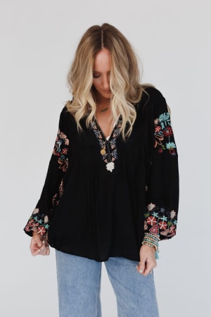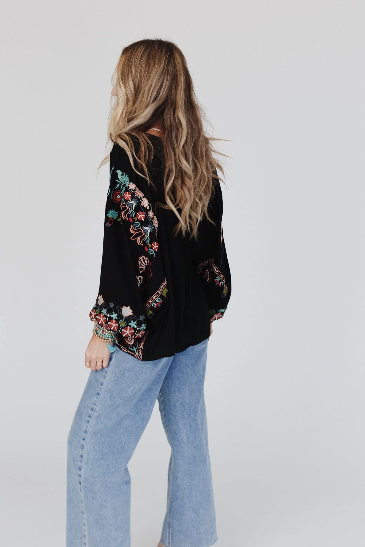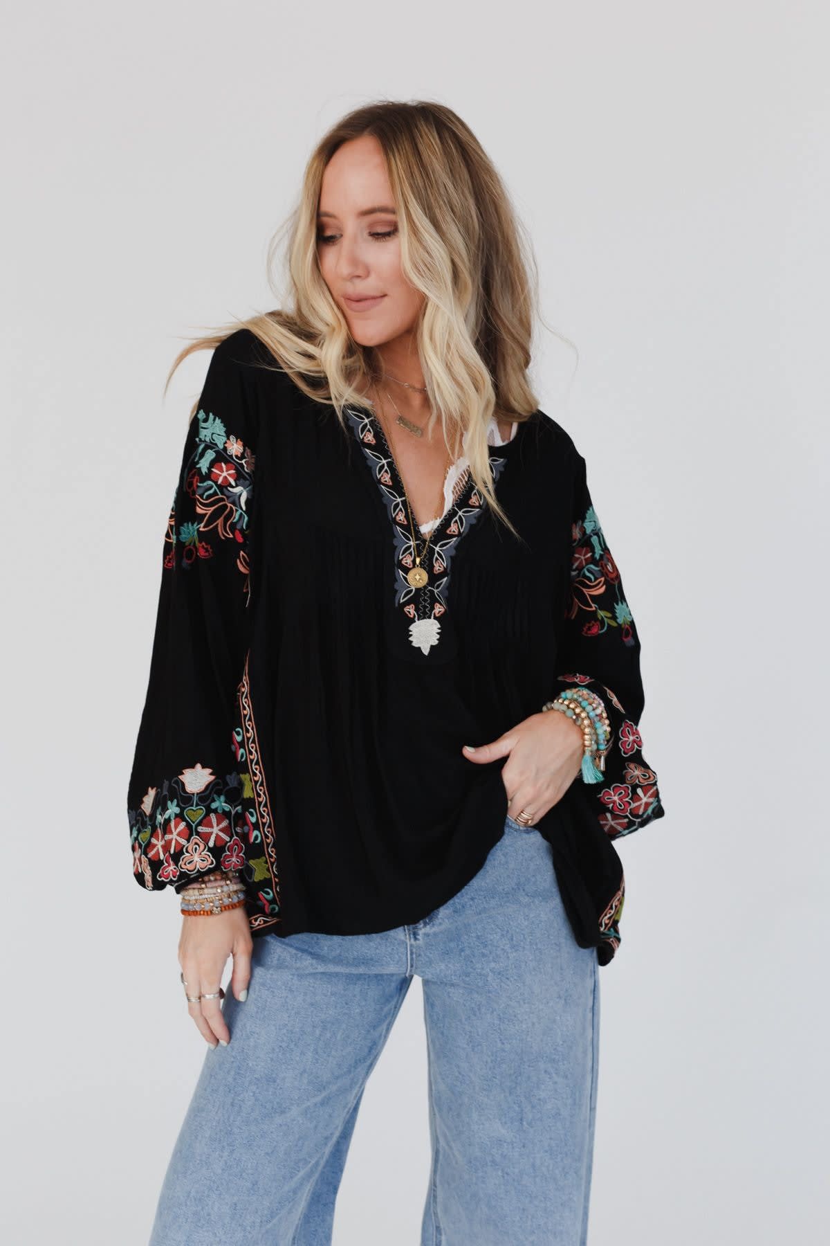 The beautiful and lightweight Frida Embroidered Dolman Sleeve Top is a must-have addition to your boho wardrobe!
