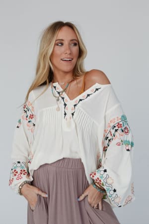 The beautiful and lightweight Frida Embroidered Dolman Sleeve Top is a must-have addition to your boho wardrobe!
