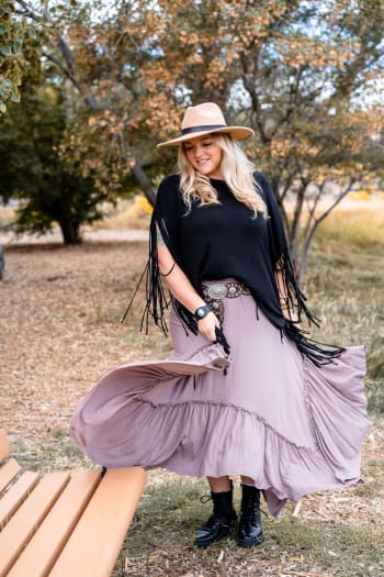 • Loose and flowy silhouette with slight high-low bottom edge (perfect for your leggings!)