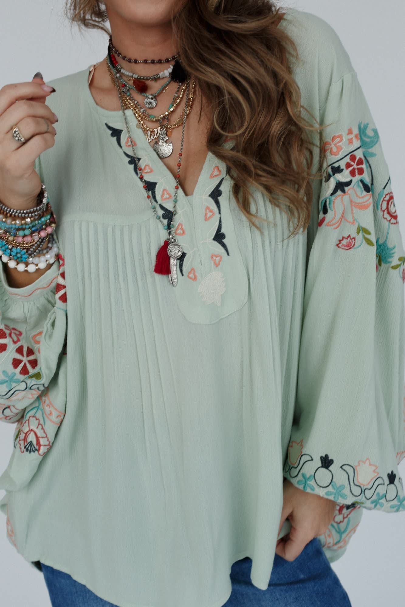 The beautiful and lightweight Frida Embroidered Dolman Sleeve Top is a must-have addition to your boho wardrobe!