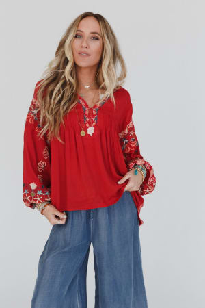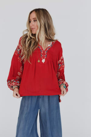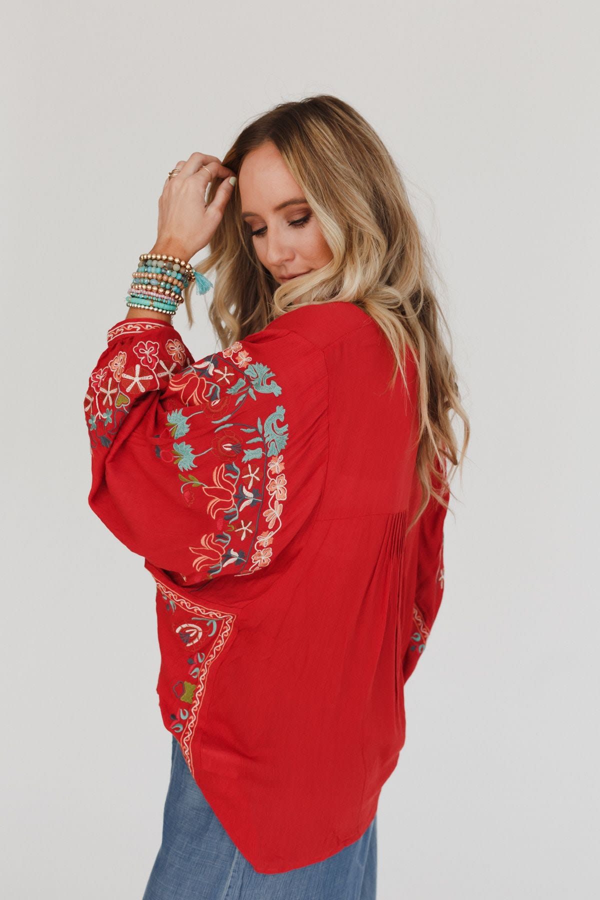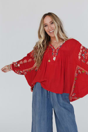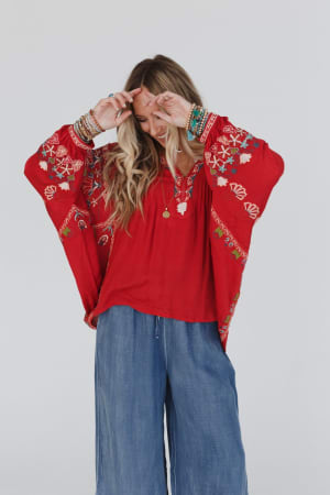 The beautiful and lightweight Frida Embroidered Dolman Sleeve Top is a must-have addition to your boho wardrobe!