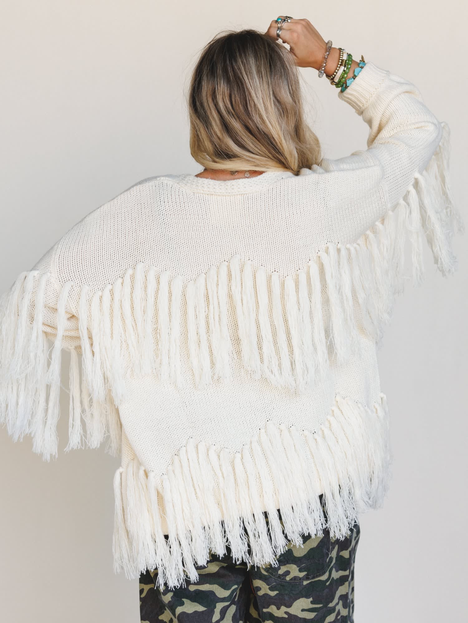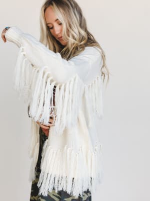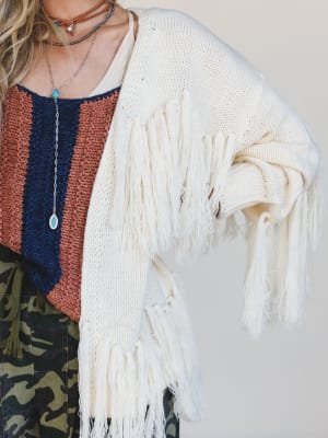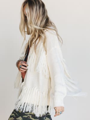 - Fringe-trimmed cardigan that moves with you and adds instant boho flair