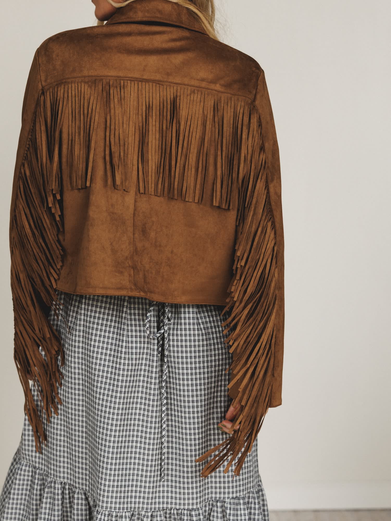 Slide it on and let the fringe fly—this jacket is a total showstopper.
