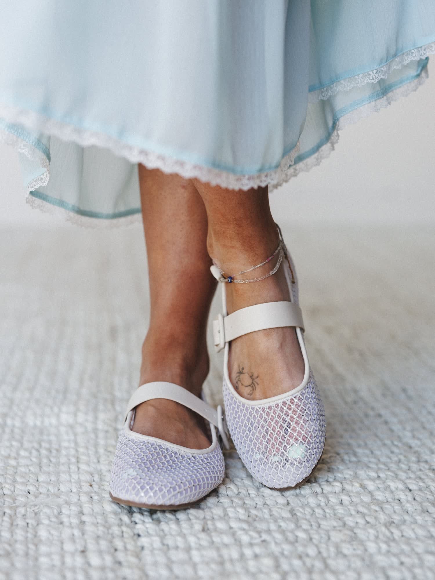 These dreamy mesh flats are exactly what you need for a festival outfit that takes you from morning workshops to evening concerts in complete comfort. The delicate perforated design brings bohemian fashion meets modern sophistication to your free-spirited style.
