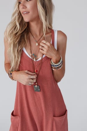 A bold boho statement for any of your favorite outfits is the Giselle Stone and Shell Boho Necklace. It features 4 layers with an adjustable chain clasp, various pendants including stones and a shell, chains, faux suede rope, and bead details - the perfect boho touch!