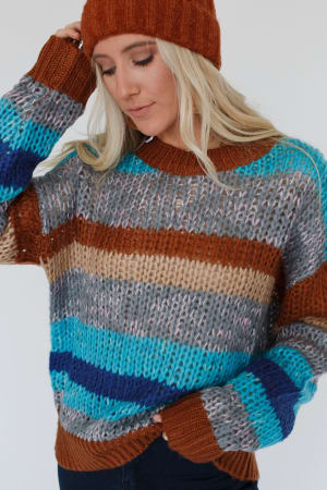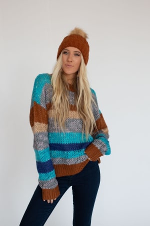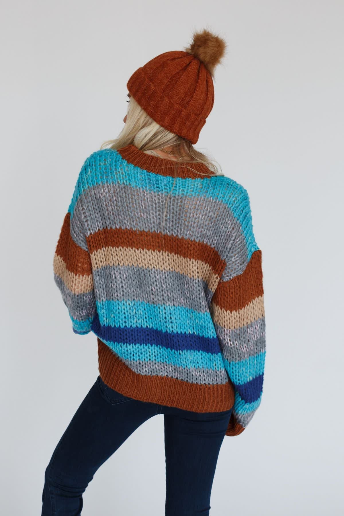 How fun is our Go For It sweater- this cute and cozy multi striped, long sleeve adds some color to your outfit! Style with your favorite denim flares for a boho holiday look!