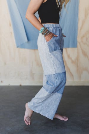 Get the look of denim with the feel of loungewear with these checkered wide leg pants.