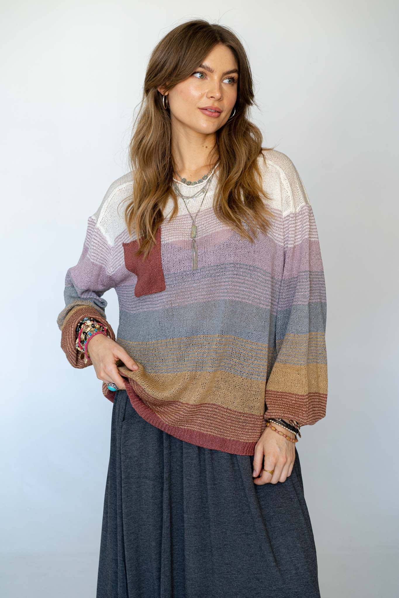 Looking good and being comfortable come together in the Going Places Gradient Stripe Sweater - you're going to love it!