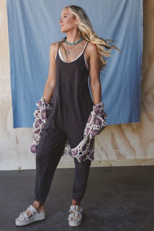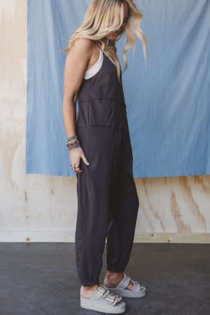 Pair this boho black jumpsuit with sneakers and a denim jacket for a sleek casual look.