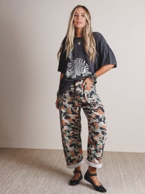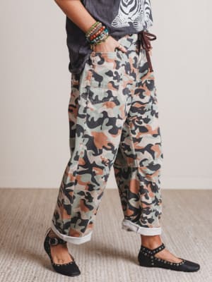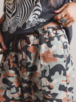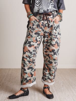 Tough meets tailored in the Golden Thistle Pants. Featuring bold camo and soft structure, these are your go-to for everyday edge with weekend comfort.