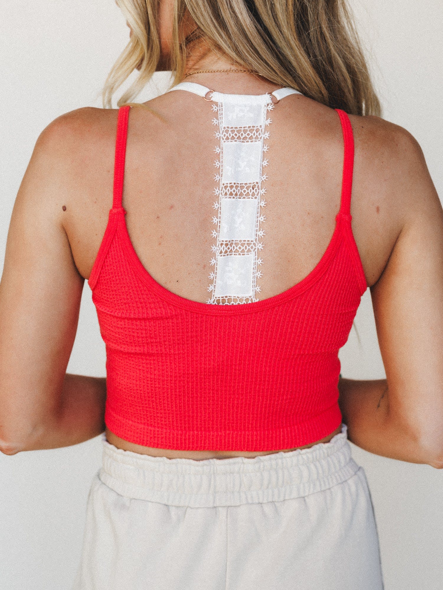 • Delicate lace racerback detail adds feminine boho chic appeal to this versatile bralette.