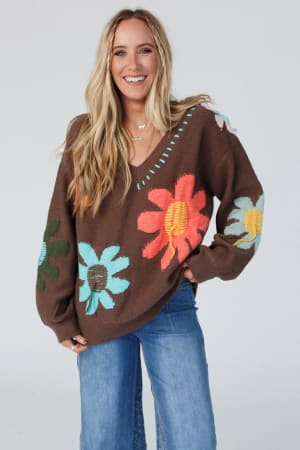 Cozy, oversized, and oh so cute, the Good Mood Flower Print Sweater is the ultimate boho sweater of the winter season. Once you put this on, you’ll find yourself wanting to wear it all of the time!