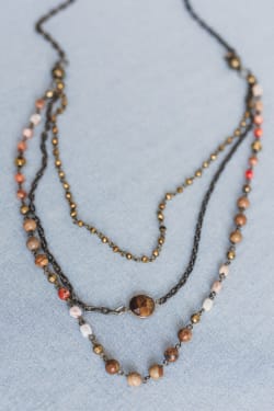 Adjustable statement necklace; can be worn long or wrapped around your neck to be worn shorter