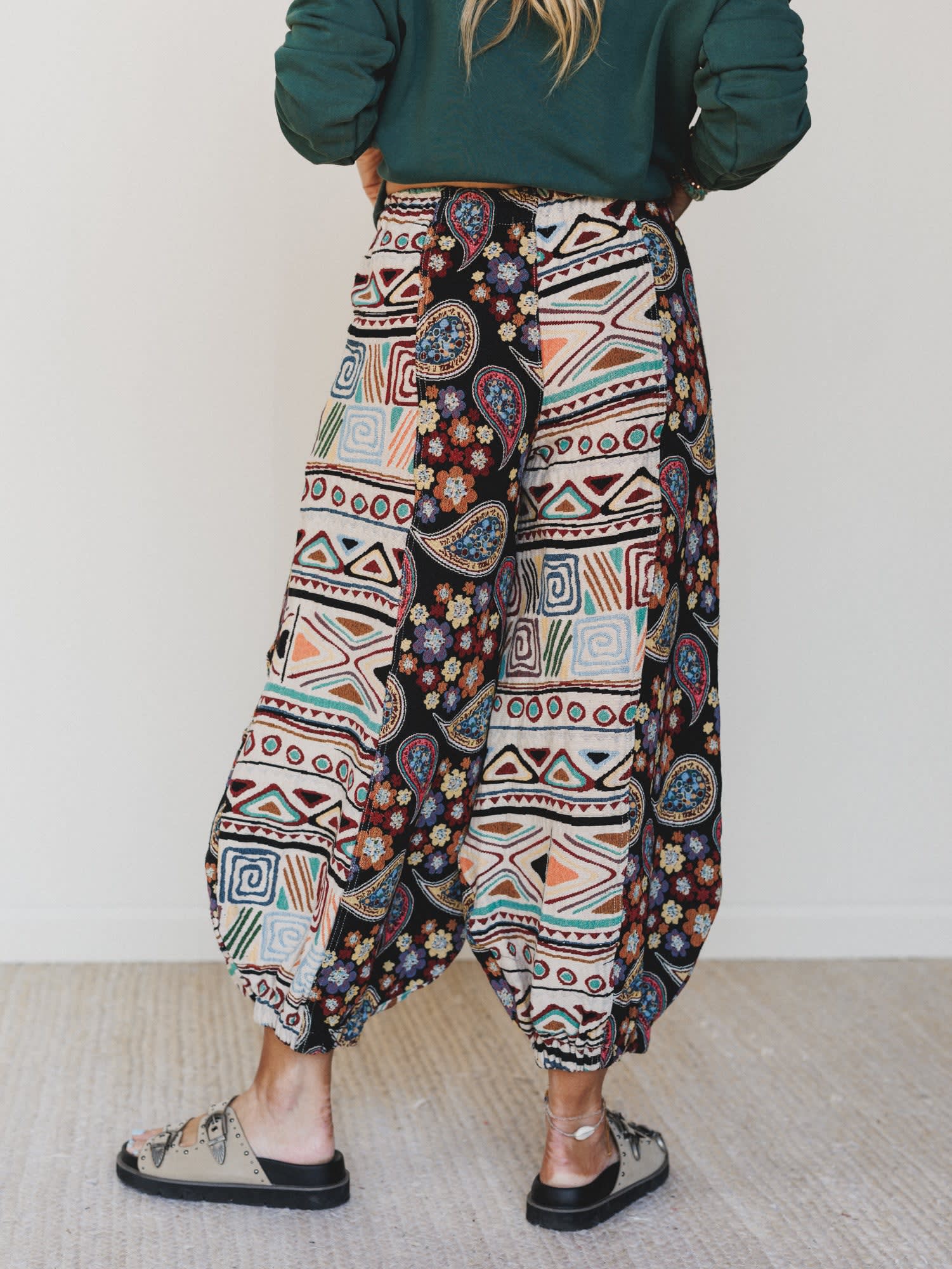 • Relaxed, balloon-style leg with elastic cuffs for that true boho silhouette