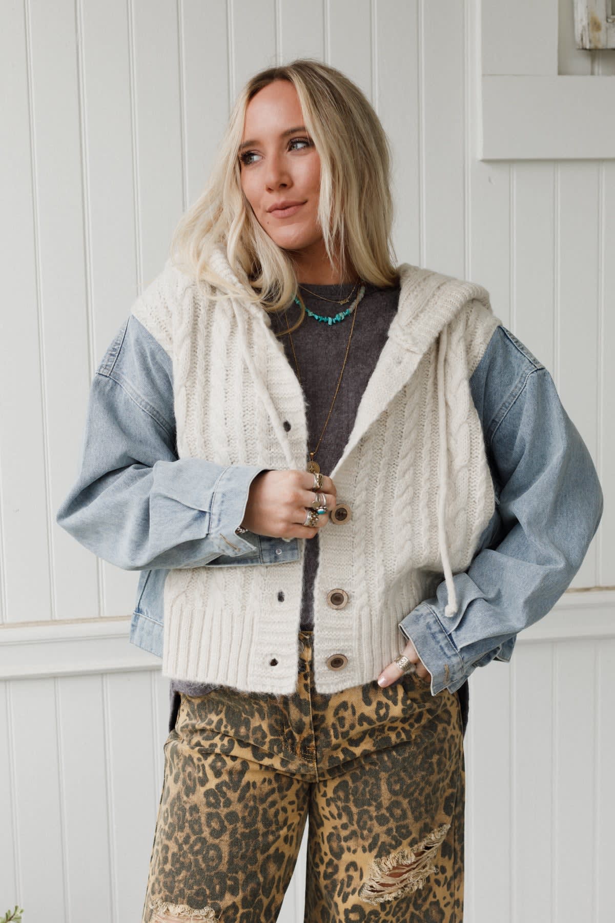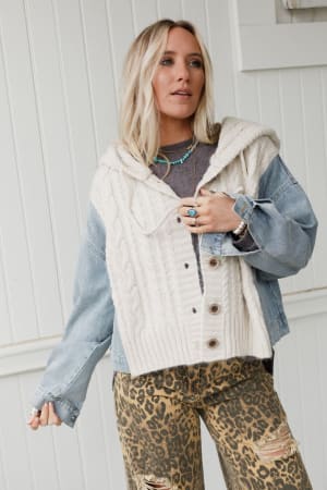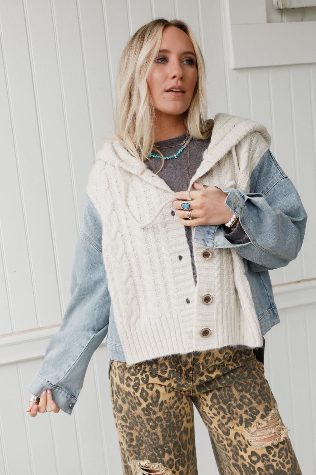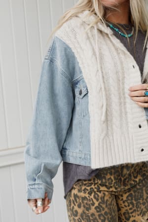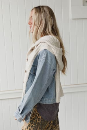 This uber cozy boho style denim jacket is the perfect layer for sudden chills at all your outdoor events.