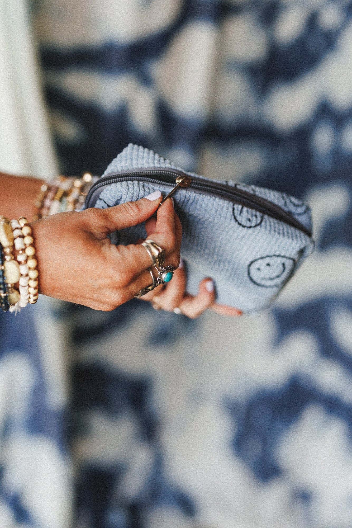 Bring a little sunshine with you wherever you go. This pouch is sure to elevate your boho style, keep you organized, and make people smile!