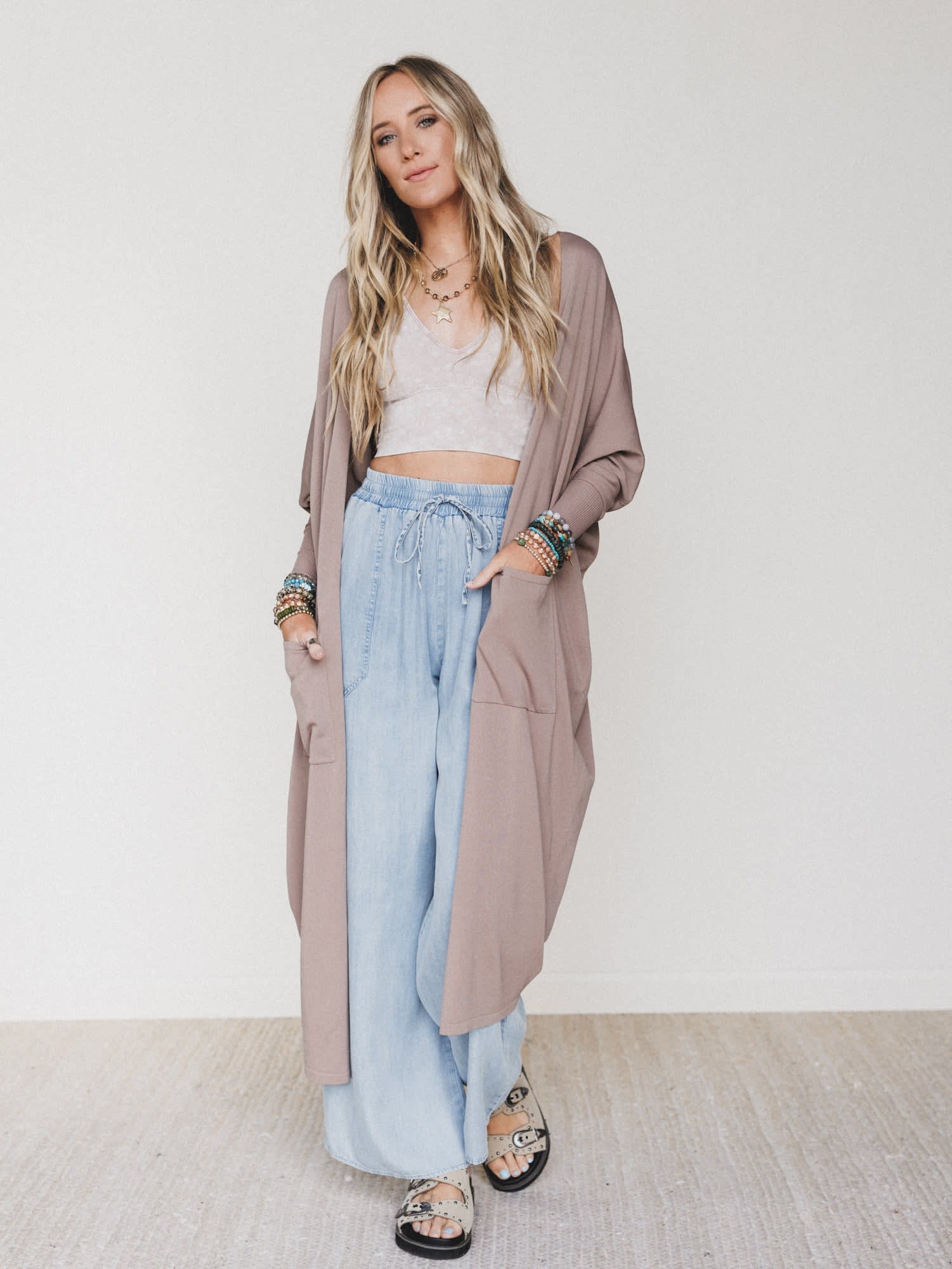 - Perfect for layering over tanks, bralettes, or wide leg pants