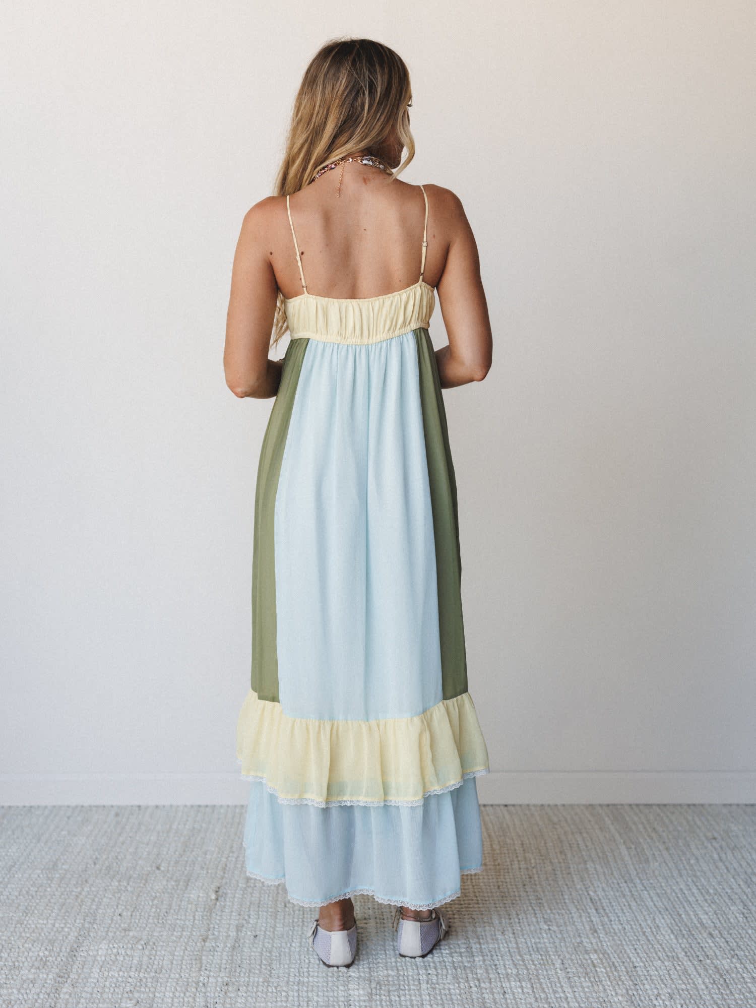 • Adjustable spaghetti straps and empire waist ensure a flattering fit that flows beautifully.