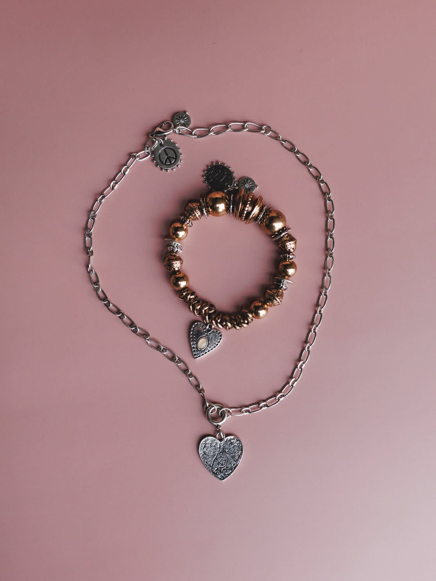 Give your everyday look a golden glow with this timeless, charm-packed jewelry duo. The Heart of Gold Bundle brings vintage spirit and heartfelt detail to the forefront—perfect for gifting or treating yourself.