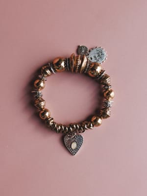 - The Heart Of Gold Bracelet mixes warm metallic tones and bold beads with a dangling heart charm for a stacked, storied vibe