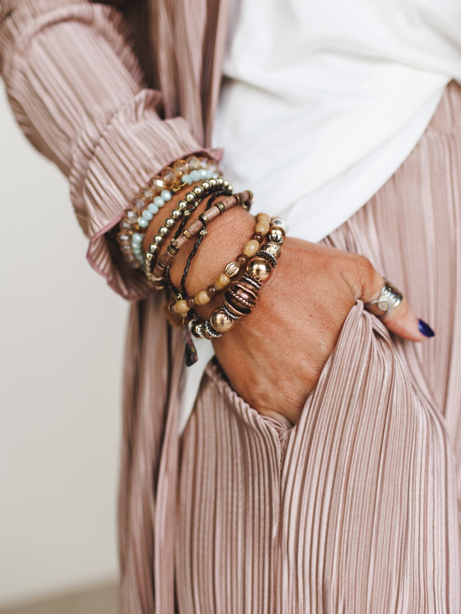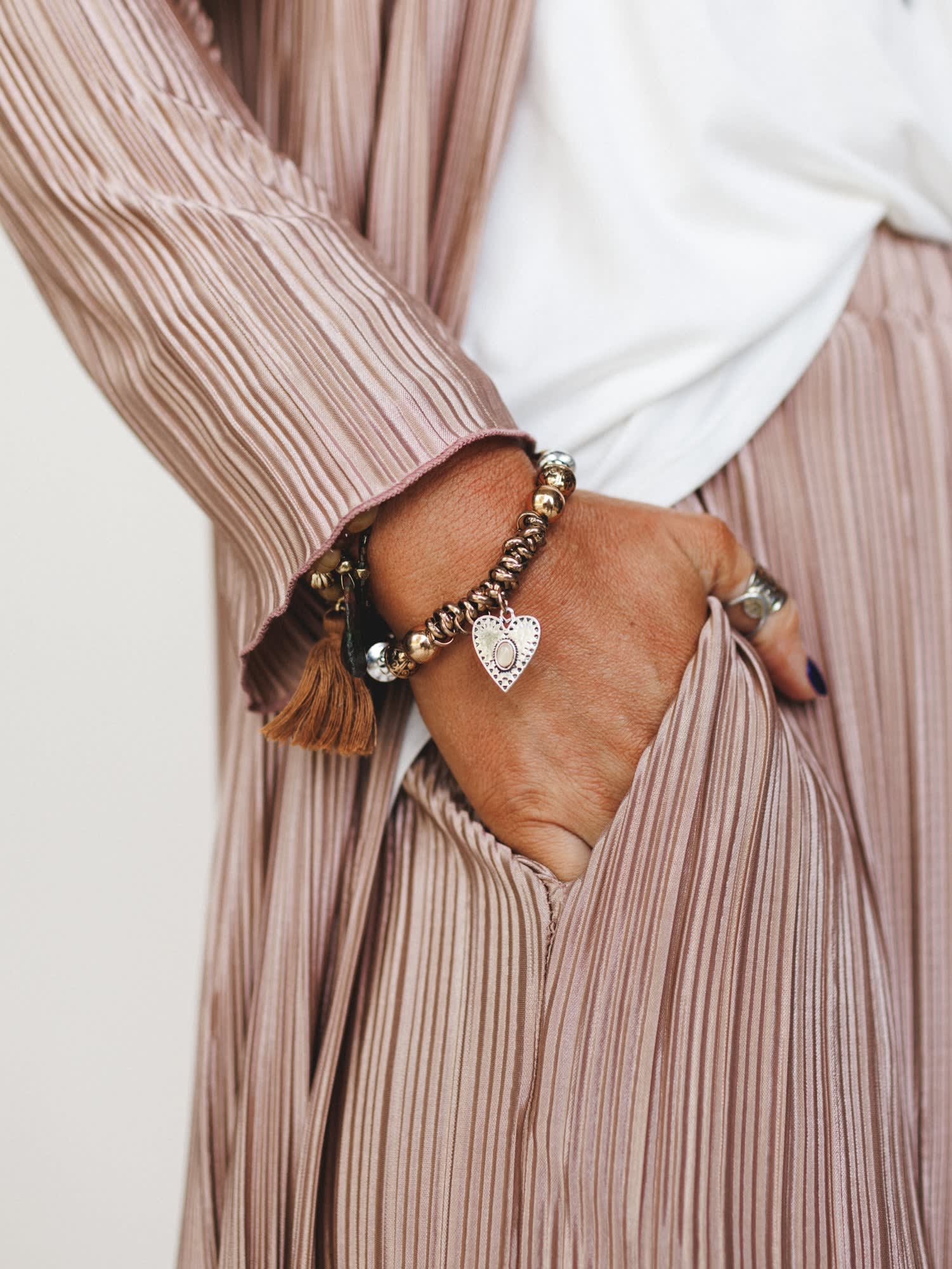 Stacked with meaning and style, the Heart Of Gold Bracelet is more than just a pretty piece—it's a vibe. With its mix of metallic beads, vintage charms, and a heart pendant that radiates warmth, this bracelet is ready to add a soulful finish to your everyday look.