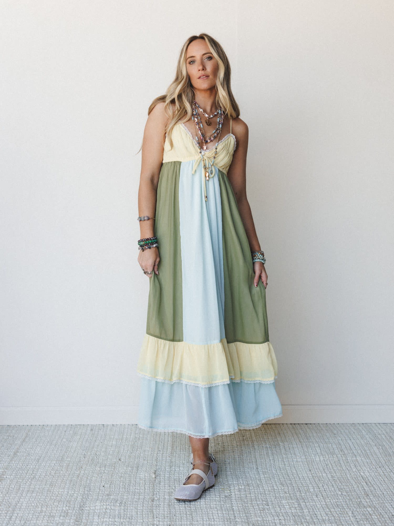 This dreamy boho dress bundle is exactly what to wear on a road trip when you want effortless style that transitions from day to night. The Heart At Sea dress combines with layered bohemian jewelry to create the perfect free-spirited ensemble that captures authentic boho chic.