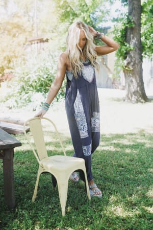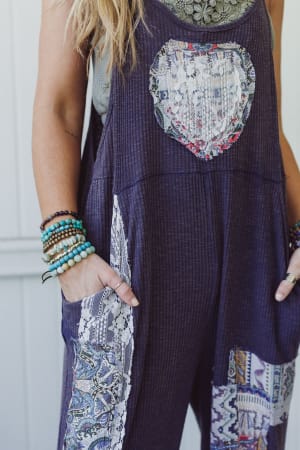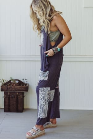 Pair this oversize jumpsuit with a tank and crochet top for a lovely layered look.