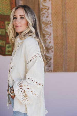 Pair this lace crochet top with a tank top and matching joggers for a cool monochrome look.Β