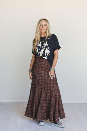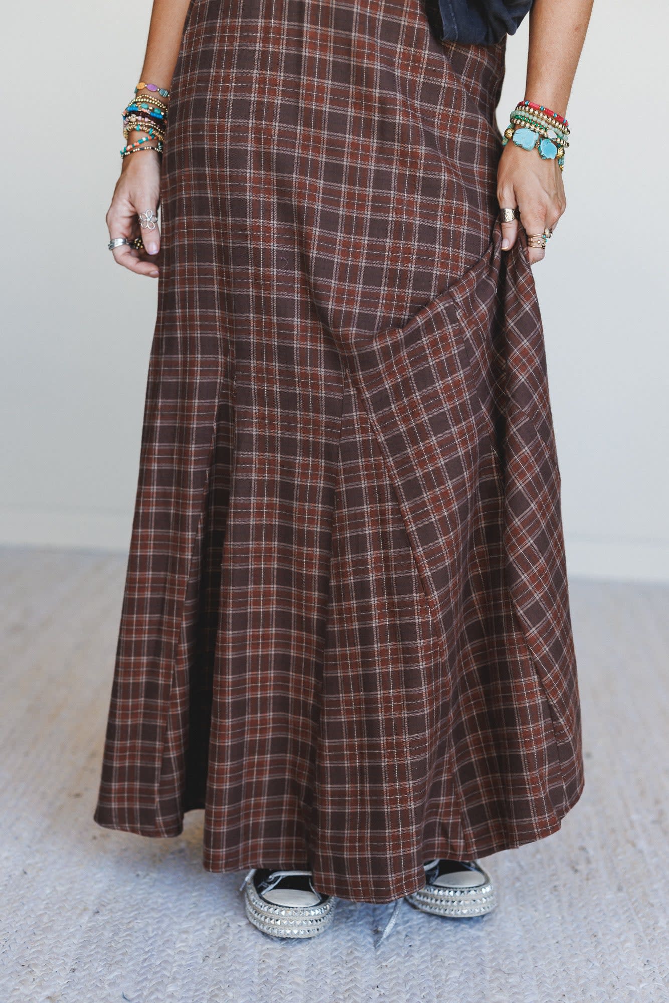 Flow freely in this prairie-inspired plaid maxi—earthy, timeless, and beautifully boho.