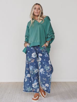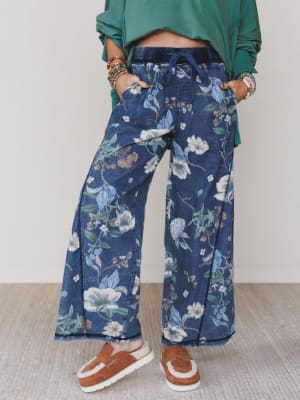 Your floral denim moment has arrived. The Honeyflower Pants are where comfort meets creative expression—designed with the same blooming print as our best-selling overalls but in a relaxed wide leg cut for everyday ease.