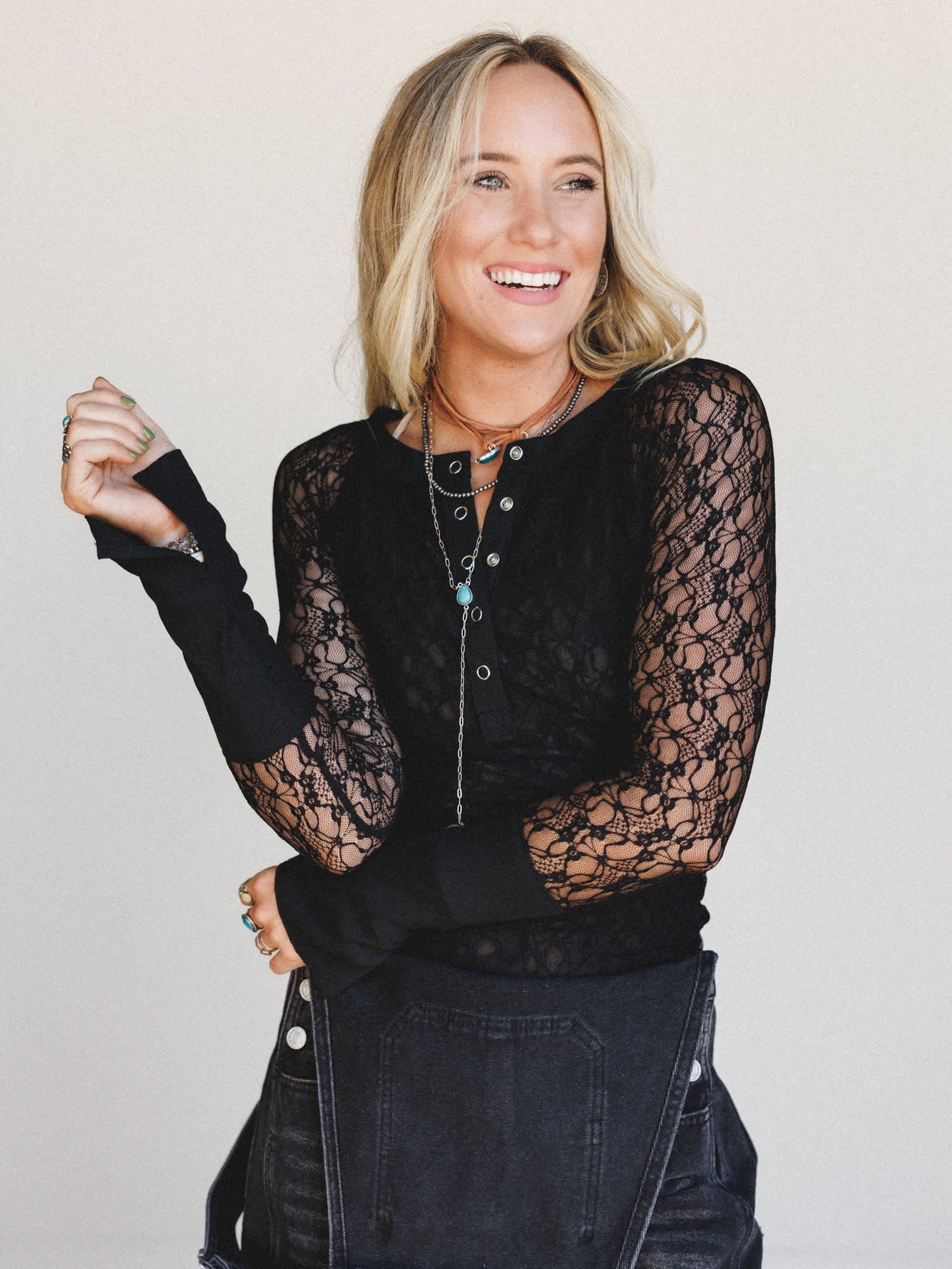 A lace-detailed staple with just the right amount of edge. The Honeythread Top mixes romantic textures with everyday wearability—perfect for layering or making a statement all on its own.